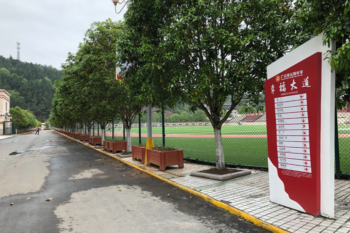 新校區(qū)幸福大道再次詮釋辦學(xué)理念——尊嚴(yán)源于拼搏、幸福來自奮斗(校園導(dǎo)向標(biāo)識牌制作安裝)
