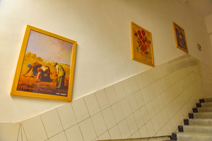 寬敞明亮的藝術(shù)走廊——創(chuàng)新發(fā)展、文藝雙飛(木質(zhì)牌匾標(biāo)識牌門牌、樓道裝飾畫制作)